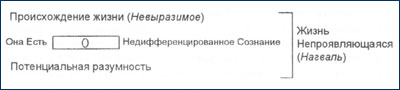 Итак, у нас есть единая жизнь, которая прежде всего является неразделённым сознанием и которая благодаря наблюдениям также известна нам под названием потенциального разума. Нам ничего не известно о происхождении жизни как таковой, поэтому мы просто признаем факт Её Существования, называя Её Невыразимым. Это есть Жизнь Непроявляющаяся. Другими словами, Она Есть, но она же — Ничто, Пустота, которую Толтеки назвали нагвалем(рис. 6).
