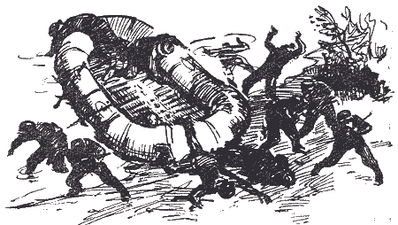 Одна за другой с того берега спускались в воду огромные лодки и, — наращиваясь одна на другую, двигались к нашему берегу. То же самое можно было видеть и вверх и вниз по течению. Реку пересекали понтоны. И по ним уже бежали, бежали солдаты в рогатых касках…
