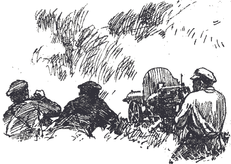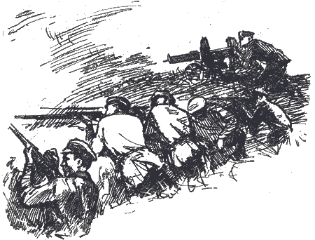 Ударили оба пулемета. Грянули залпы винтовок. Дым окутал старые, поросшие травой окопы.