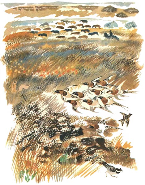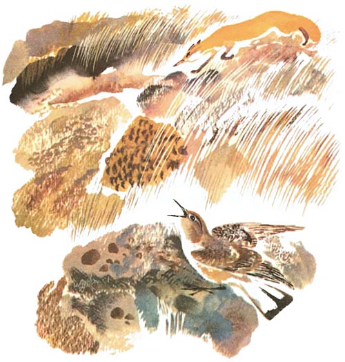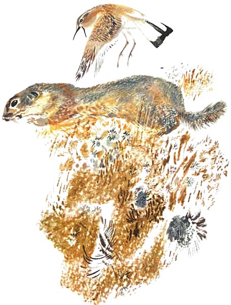 — Не наездник, а СТОРОЖ! — Это уже шестые мне говорят. — Сторожит она сусличье поселение. Чуть орёл из-за облака или лиса из-за камня — бьёт птичка тревогу. Запрыгает, засвистит. Суслики — по домам, только пыль фонтанчиками из нор!