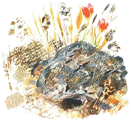 — Это, — говорят, — птичка НОРУШКА. Раз! — и юркнула в норку. От ястреба в норке прячется и гнездо в норке вьёт. НОРУШКА она!
