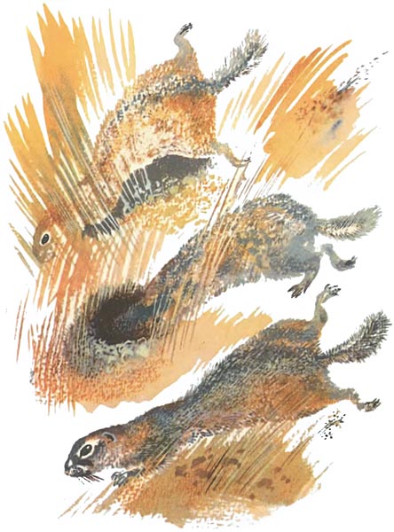 — Не пишите! — говорят пятые. — Не торопитесь! Птичку эту мы называем НАЕЗДНИК. Смотрите: верхом на суслике скачет!