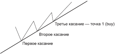 РИС. 4.1.Точка 1 – покупка от линии восходящего тренда при третьем касании