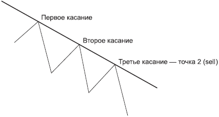 РИС. 4.2.Точка 2 – продажа от линии нисходящего тренда при третьем касании