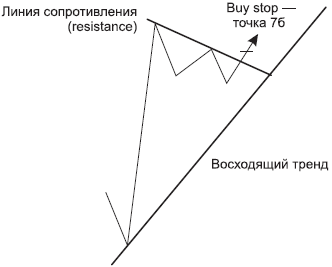 РИС. 4.8.Точка 7б – при восходящем движении, если цена пробивает линию сопротивления, она ускоренно летит вверх