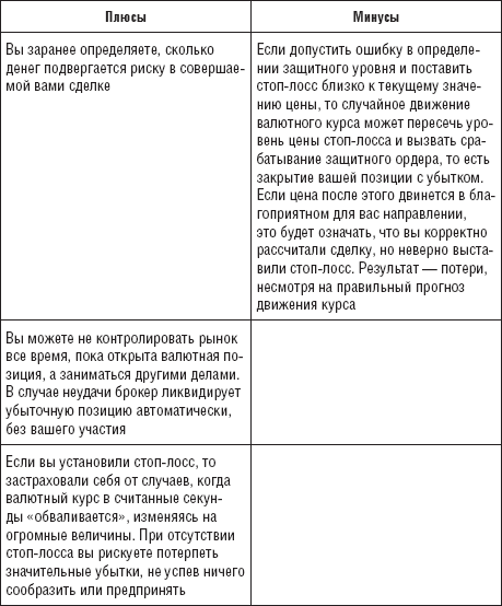 Если цена превышает этот уровень, то ваша валютная позиция автоматически ликвидируется брокером. Таким образом, вы ограничите убытки определенной суммой. Перед входом в сделку я всегда рассматриваю все плюсы и минусы. Давайте и мы с вами рассмотрим все плюсы и минусы установки стоп-лосса (с точки зрения трейдера).