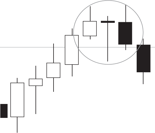 • маленькое тело (черное или белое), расположенное у верхнего ценового диапазона сессии;