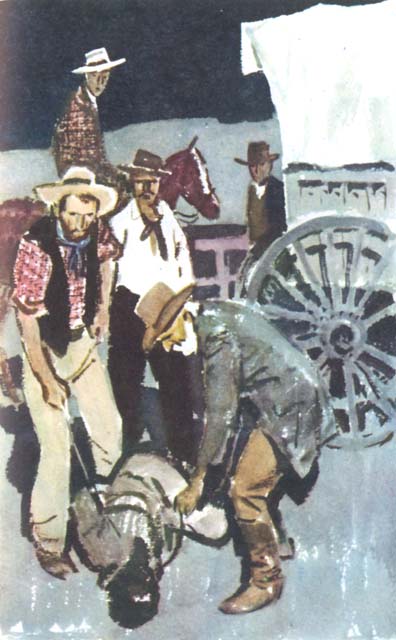 Толпа сгрудилась еще плотней, созерцая дело своих рук и, кажется, испытывая скорее ужас, чем торжество. Но ни у кого не хватило мужества или милосердия сказать хоть слово против. С какой-то машинальной расторопностью негра подняли и, словно мешок с зерном, швырнули в фургон. Отец и сын забрались на козлы, остальные отвязывали лошадей и садились в седла, потом в молчании потянулись следом за фургоном. Все это не были привычные участники судов Линча — такое заключение впоследствии вывел Дэвис, — скорее, просто любопытные зрители, которые рады были всякому случаю встряхнуться и развеять скуку своего однообразного существования. Для многих, а пожалуй что и для всех, линчевание было в новинку. И Дэвис, как ни был он потрясен и напуган всем виденным, тоже побежал за своей лошадью, сел верхом и поплелся в хвосте отряда. От волнения он сам плохо понимал, что делает.