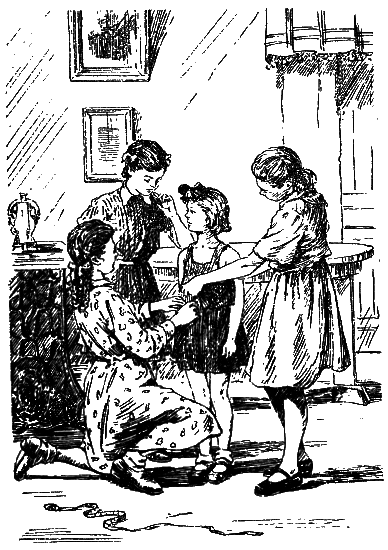 Все девочки стали помогать Нине одеваться. Лида торопливо прикалывала пуговицы, Галя что-то приметывала, Тоня что-то отпарывала.