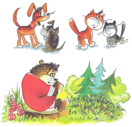 «Отчего ты плачешь,Глупый ты Медведь?» —«Как же мне, Медведю,Не плакать, не реветь?Бедный я, несчастныйСирота,Я на свет родилсяБез хвоста.Даже у кудлатых,У глупых собачатЗа спиной веселыеХвостики торчат.Даже озорныеДраные котыКверху задираютРваные хвосты.