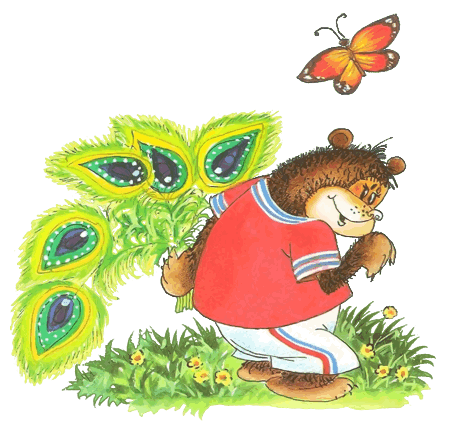 Но с улыбкою глядитНа медведя Айболит:«И куда тебе в павлины!Ты возьми себе козлиный!»«Не желаю я хвостовОт баранов и котов!Подавай-ка мне павлиний,Золотой, зеленый, синий,Чтоб я по лесу гулял,Красотою щеголял!»