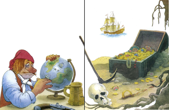 Один пират закопал в пещере здоровенный кованый сундук с золотыми пиастрами. Он нарисовал на бумажке горелой головешкой план места, где спрятаны сокровища, и унёс её на корабль. Но названия того острова, чёрт возьми, не указал для памяти, из-за своей пиратской неграмотности. А через некоторое время — и совсем забыл из-за своей пиратской рассеянности. Вот что бывает, если грамоте не обучен. Так и пропал сундучок с пиастрами. Лежит себе где-то в пещере на каком-то острове, но кто ж его знает, на каком. И до сих пор его найти не могут…