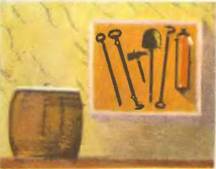 Как только въехали на мост, Витя увидел большую красную бочку. Она припасена на случай пожара на мосту. Тут же стоял щит с пожарными топориками и ломами, лопатой и баграми.