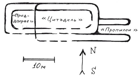С запада же к «цитадели» примыкает как бы «преддверие» — тоже окруженное стенами, но более низкими, и «пол» тут расположен ниже, чем в «цитадели». Как не вспомнить тут слова одного из толкиеновских эльфов, чья мудрая цивилизация, по преданию, предшествовала человеческой: башни эльфийских твердынь еще смотрят на мир, но люди считают их скалами… Как не вспомнить и рассказ Льва Гумилевского «Страна гипербореев»: автор (в 1920-е гг.) поместил последний оплот их древней культуры именно в район Умбозера.