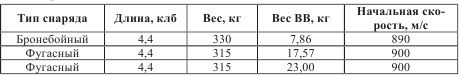 Вес заряда 114–119 кг, начальная скорость снаряда 875 м/с, дальность стрельбы 39,1 км.