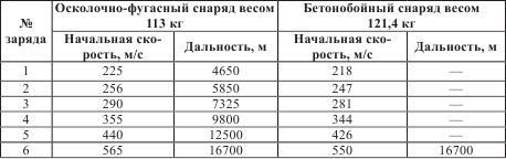 Таблица стрельбы снарядов одинакового калибра
