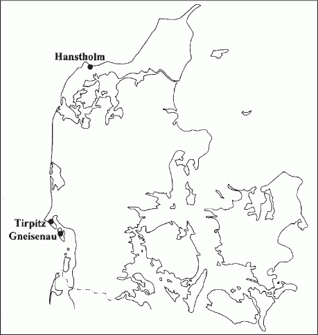 Еще в апреле 1940 г., сразу же после оккупации Дании, немцы установили на мысе Ханстхольм батарею из четырех 17-см пушек SK L/40.