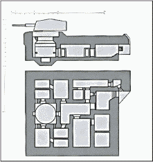 15-см двухорудийная башенная установка. Общий объем помещений 2144 куб. м
