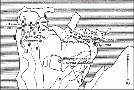 Расположение батарей противника на мысе Крестовый