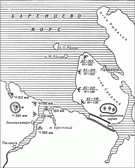 Летом 1944 г. артиллерийские дуэли у губы Петсамо стали еще ожесточеннее. Так, 28 июня в 3 ч 24 мин батарея № 210 с полуострова Средний открыла огонь по немецкому конвою в составе пяти транспортов, 16 малых сторожевых судов и катеров, идущих к Петсамо. Немцы немедленно начали ставить дымовые завесы с катеров и с пяти самолетов Хе-115. Неприятельские береговые батареи открыли огонь по батарее № 210. Артиллерийский дивизион 104-го пушечного полка в свою очередь открыл огонь на подавление немецких батарей на мысах Вистиниеми, Нумерониеми и в порту Лиинахамари.
