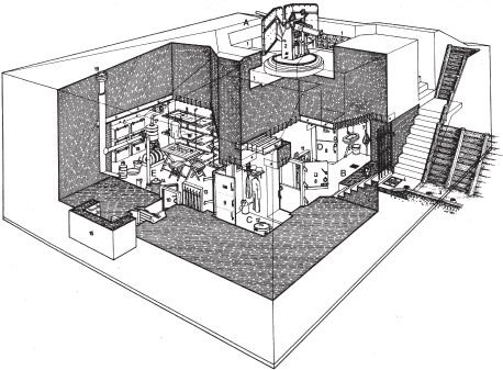 Снаряженные боеприпасы; 5-см противотанковое орудие; траншея подхода; колодец; крепостная решетка; входной кабельный порт; водяной насос; двойная бронированная дверь; газонепроницаемая дверь; дверь аварийного выхода; стенд саперного оборудования; полевой туалет; стойка для винтовок; обогреватель; шахта аварийного выхода; трехярусные койки; вентилятор; шкафчики личных вещей; дымовая труба