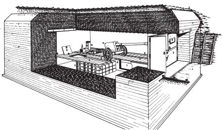 Гаражный орудийный бункер модели 672 (бункер I): В нем находятся: