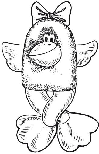 – глаза – 1 деталь белого цвета. 2. Детали туловища складывают изнаночными сторонами наружу, сшивают нитью коричневого цвета, оставляя разрезы для крыльев, ног и набивания.