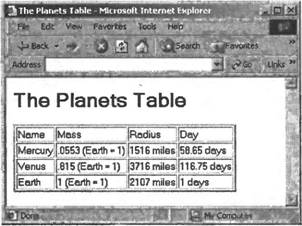 Теперь можно непосредственно открыть planets.xml в Internet Explorer, как видно на рис. 1.3.
