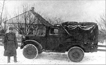 Легкий автомобиль американского производства «Додж» WC. Определение точной модификации модели затруднительно, так как дверь кабины, вероятно, уже приделана в ремонтных мастерских Красной Армии. 1-й Белорусский фронт, февраль 1945 года (АВЛ)