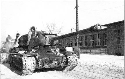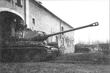 Советские тапки ИС-2 входят в пригороды Познани. 1-й Белорусский фронт, конец января 1945 года (РГАКФД)