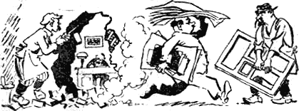 Внутри странного здания жизнь кипела ключом. Сотрудники тащили вороха бумаг, пирамиды папок, волокли стулья, вязанки скоросшивателей и дыропробивателей. Стремительно, будто во главе полка, атакующего вражеские позиции, проследовал гражданин мужественного облика с развернутым флагом в руках. За ним семенила в узенькой юбочке девица рафаэлевского толка и, то и дело оскальзывая с высоких и тонких, как карандаш, модных каблуков, восклицала: