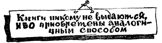 «Книги никому не выдаются, ибо приобретены аналогичным способом».