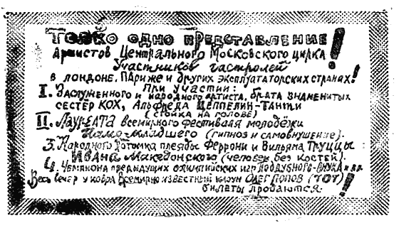 ТОЛЬКО ОДНО ПРЕДСТАВЛЕНИЕ артистов Центрального Московского цирка!