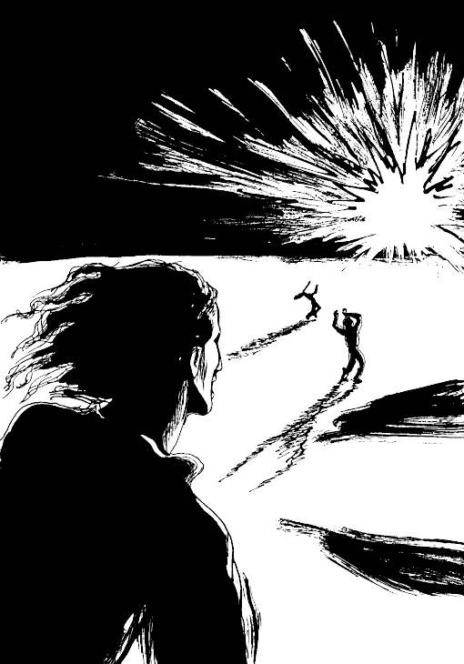 Они сделали только шаг… Пороховой склад зашатался, как карточный домик, и в клубах дыма и огня взлетел на воздух. Флибустьеры не слышали взрыва — словно ватой заложило уши. Медленно, как во сне, взмывали вверх бревна, бочки, балки и так же медленно и беззвучно падали вниз.