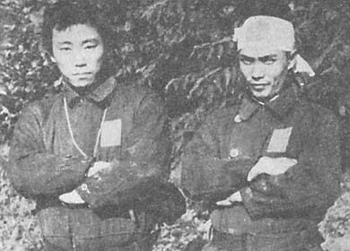 Слева на фото один из изобретателей «кайтэнов», младший лейтенант Сэкио Нисина. Рядом с ним старший лейтенант Ёсинори Камибэппу, также входивший в группу «Кикусуи» и погибший с подводной лодкой И-37