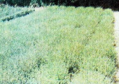 Пажитник голубой: сверху — общий вид растений; снизу — семена.