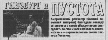 Американский режиссер (бывший советский эмигрант) благодаря взгляду со стороны и своей убежденности смог сделать то, что многим казалось невозможным — экранизировать роман Виктора Пелевина.