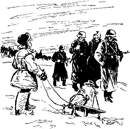 Коля шел по шоссе, и ему хотелось петь, так легко и радостно стало на душе. У самого поворота на проселок он встретил странную процессию. Рыжая кляча тащила за собой низкие дровни. На дровнях лежали два немца с перебинтованными лицами. Их везли ногами вперед, как покойников. Рядом шли пятеро автоматчиков. Коля остановился у обочины и с любопытством смотрел на проезжающих.