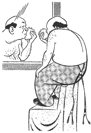 Хенкин гримировался в кабинете директора. Зеркало было расположено над высоким камином. Чтобы видеть свое отражение, низенький, раздетый до пояса Хенкин уселся на спинке стула.