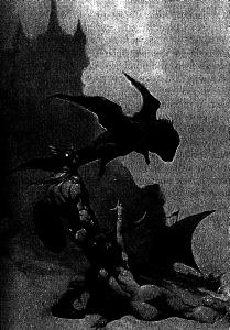 Если опросить достаточно большое число любителей фантастики: какой образ прежде всего приходит на ум, когда говорят «героическая фэнтези», то чаще других назовут Конана-варвара. Если же попросить нарисовать мысленно аутентичную картинку, то получится, скорее всего, вот что. Воин-атлет, мачо, груда мышц, тело покрыто варварскими доспехами или шкурами, на голове нордический рогатый шлем, в руках — меч или топор, забрызганный кровью. А для контраста — красавицы «в теле», законная добыча победителя-спасителя… Впрочем, можно не распалять воображение, а ответить короче: «героическая фэнтези» — это картины Фрэнка Фразетты.