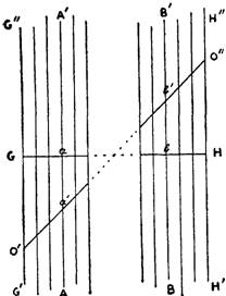 Допустим, что неконечный наблюдатель (ваше обычное, повседневное Я) наблюдал в поле 2 (линия GH на рис. 12) образ b, относящийся к состоянию мозга bb' (вертикальная линия), которого пока еще не достигла точка пересечения линий GH и О'О". Иначе говоря, вы увидели во сне будущее событие. Затем, через один-два дня, когда поле 2 передвинулось на G" H", вы пережили это событие наяву. Далее представим, что после того, как вы увидели ночью вещий сон, утром следующего дня, когда поле 2 передвинулось еще только на G'H', вы, руководствуясь некими — благими или дурными — мотивами, записали свое сновидение на листе бумаги.
