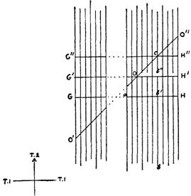 Эти три линии протянуты вверх во Времени 2 в виде плоскостей АА'В'В, ВВ'С'Си BB'D'D. Плоскости пересечены соответствующими реагентами АЕ, ЕС' и ED', a также соответствующими полями 2 (для простоты показанными сверху фигуры) А'В', В'С' и B'D', образующими часть сети поля 2 A'B'C'D'. Очевидно, что линии сети поля 2 должны корректироваться в соответствии с формой субстрата. Например, если сеть поля 2 находится в основании фигуры и вмешательство изменяет направление линий субстрата таким образом, что В'С' и B'D' расходятся под углом меньшим, чем угол между ВС и BD, то соответствующие линии поля 2 должны скорректироваться и сблизиться. В противном случае в С' и D' не оказалось бы полей 1, когда сеть поля 2 достигла бы верха фигуры. Но такую корректировку линий поля 2 в соответствии с изменяющейся формой фигуры субстрата можно объяснить только при условии, что эти линии рассматриваются как линии пересечения субстрата с универсальным заполняющим пространство полем 2, представленным в виде efgh. Аналогично должен существовать универсальный, заполняющий пространство диагональный реагент (во избежание усложненности не показанный на графике), пересечения которого с поддающимся изменению субстратом образуют поддающиеся изменению индивидуальные реагенты АЕ, ЕС'и ED'. A местом пересечения универсального поля 2 и универсального реагента должно быть универсальное поле 1.fh [16] .