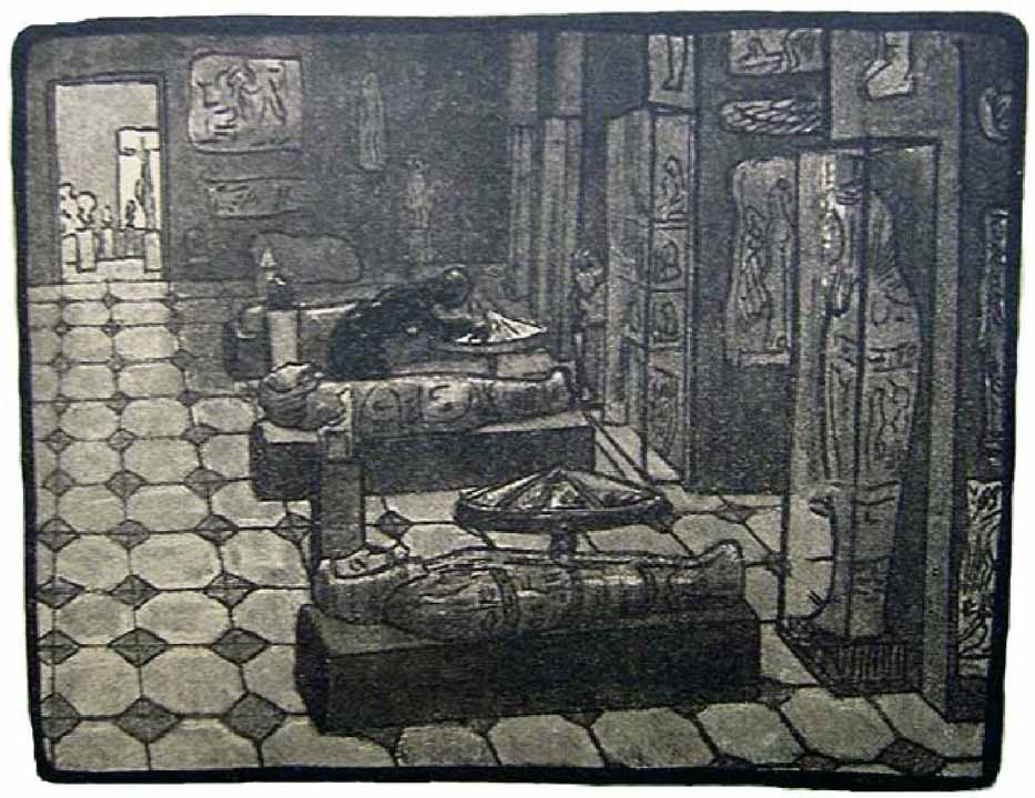 Вот глянул мне навстречу Египетский зал, глубоко знакомый и вместе чуждый в своей здешней призрачности. Он и настоящий беден живыми красками и светом; здесь же обступил он меня выцветший до конца, буроватый, тонущий в мертвенной мгле. Он был без конца безмолвен; был страшен и влекущ. В таинственном сумраке прислонялись к стенам ассирийские барельефы; из стеклянных футляров глядели исполины, запеленутые, с грозно-веселыми и загадочными лицами; мрачными рядами стояли саркофаги; высился темный облик Сехт со львиной головой. Нигде странный сумрак стереоскопного мира не был так сгущен и так уныл, как здесь; особенно глубокие тени залегли между выступами той стены, где наверху у потолка прорублены квадратные окна с крылатыми фигурами. Страшное веяло из этих темных углублений, где глаза мои, еще не отвыкнув от более яркого света верхних зал, сперва даже не могли ничего различить. Я простоял неподвижно несколько минут, слушая мертвую тишину давно прошедшего. В голове бродила смутная мысль: «быть может, всего за полчаса в эту залу вошел в первый раз в жизни мальчик с отцом и впервые пахнули ему в душу от темных каменных саркофагов и расписанных деревянных гробов загадочные чары Древнего Египта?»