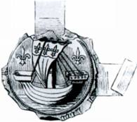 9. Герб Парижа, заказанный Наполеоном в 1811 году, с изображением Исиды, сидящей на носу ладьи, и ее звезды Сириуса, указывающей путь. Обратите внимание на трех пчел «Карла Великого», символизирующих божественное право королевской власти. Также обратите внимание на кадуцей, пронзающий корону и поддерживающий имперского орла.