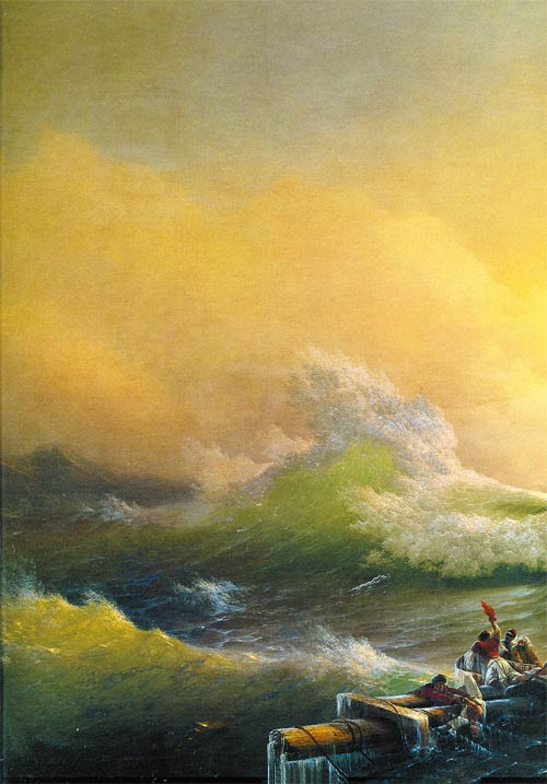 Николай I, обратив внимание на восточные костюмы мореходов, решил, что картина может предостеречь Турцию, и, в преддверии Крымской войны, купил холст у автора. Но крушение, которое изобразил Айвазовский, терпят не враги, а люди вроде нас. Обрядив смерть в романтический наряд из брызг и пены, художник поставил привычный вопрос о спасении. Иноверцы на мачте, как разбойники на Голгофе, ждут будущего, сформулированного старой притчей.