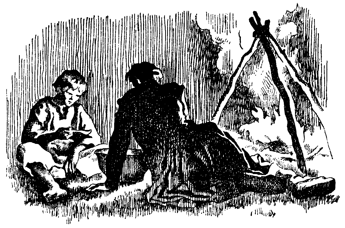 Герасим в сторонке костёр развёл, хлопочет подле котелка.