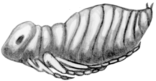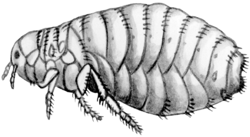 Cтадии развития блохи: а – яйцо; б – личинка; в – куколка; г – взрослое насекомое