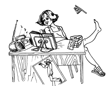 Ира, вторая наша подруга, оказалась меломанкой. Об этом мы догадались сами, как только увидели ее рабочее место. Половину письменного стола занимал огромный магнитофон. Рядом находились стопки разных кассет. Похоже, Ира не выключала магнитофон, даже когда учила уроки. Теперь нам понятно, почему она так часто ошибается, когда отвечает на вопросы учителей.