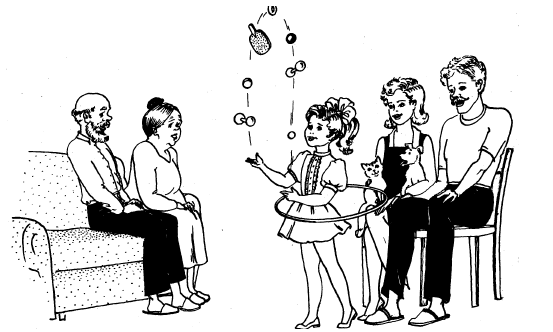 Попробуй, не сходя с коврика, перекидывать мячик с ракетки на ракетку (если у тебя нет ракеток, их вполне могут заменить книги: тонкие, в твердом переплете).