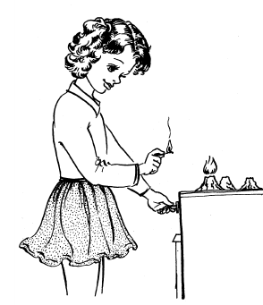 Спичку, когда у нее зажжется головка, надо чуть-чуть наклонить, чтобы огонь пошел и по деревянному основанию. А когда ты ее уже используешь, то, для того чтобы потушить, просто подуй на нее. Не тряси рукой, чтобы она погасла, – это опасно, ты можешь спичку выронить или обжечься.